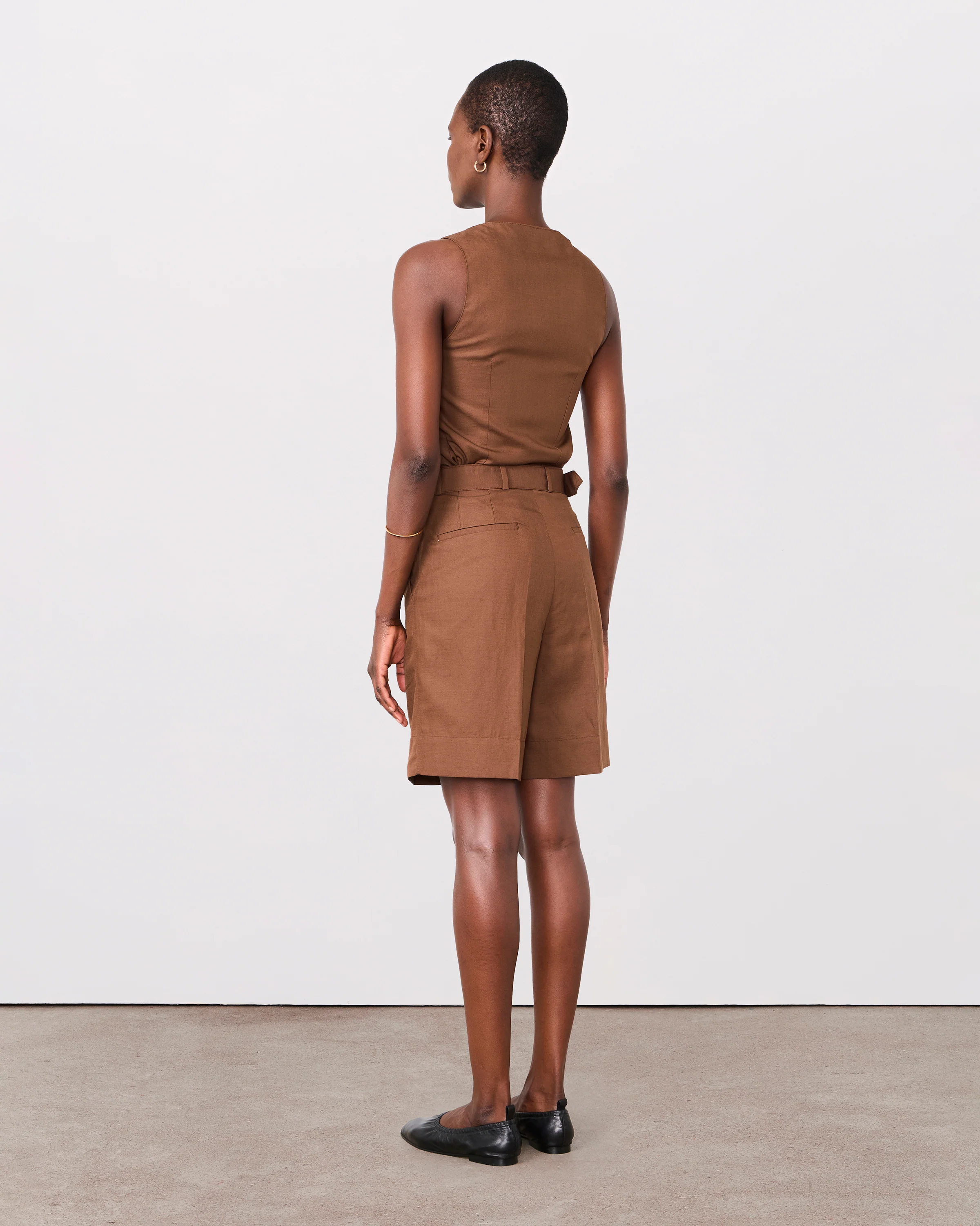 High waisted regular fitted shorts with permanent pleats.|• Italian pockets