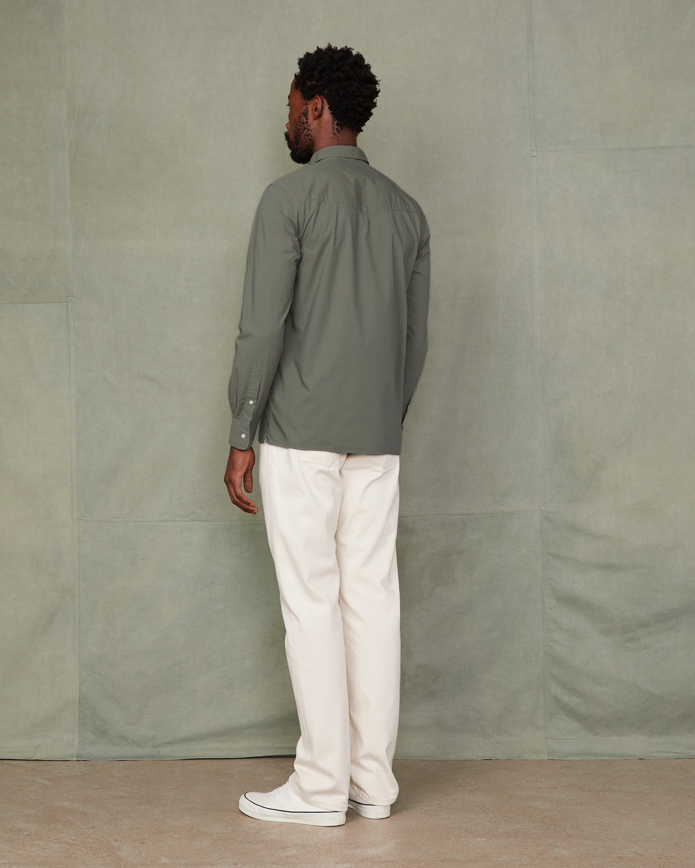 Long sleeves organic cotton poplin shirt with a slightly rounded collar. Gathered pleats at cuffs. Folded placket. Straight bottom with side slits. Back topstitched V-shape yoke. Straight fit. Pigment garment Dye.|• 100% organic cotton